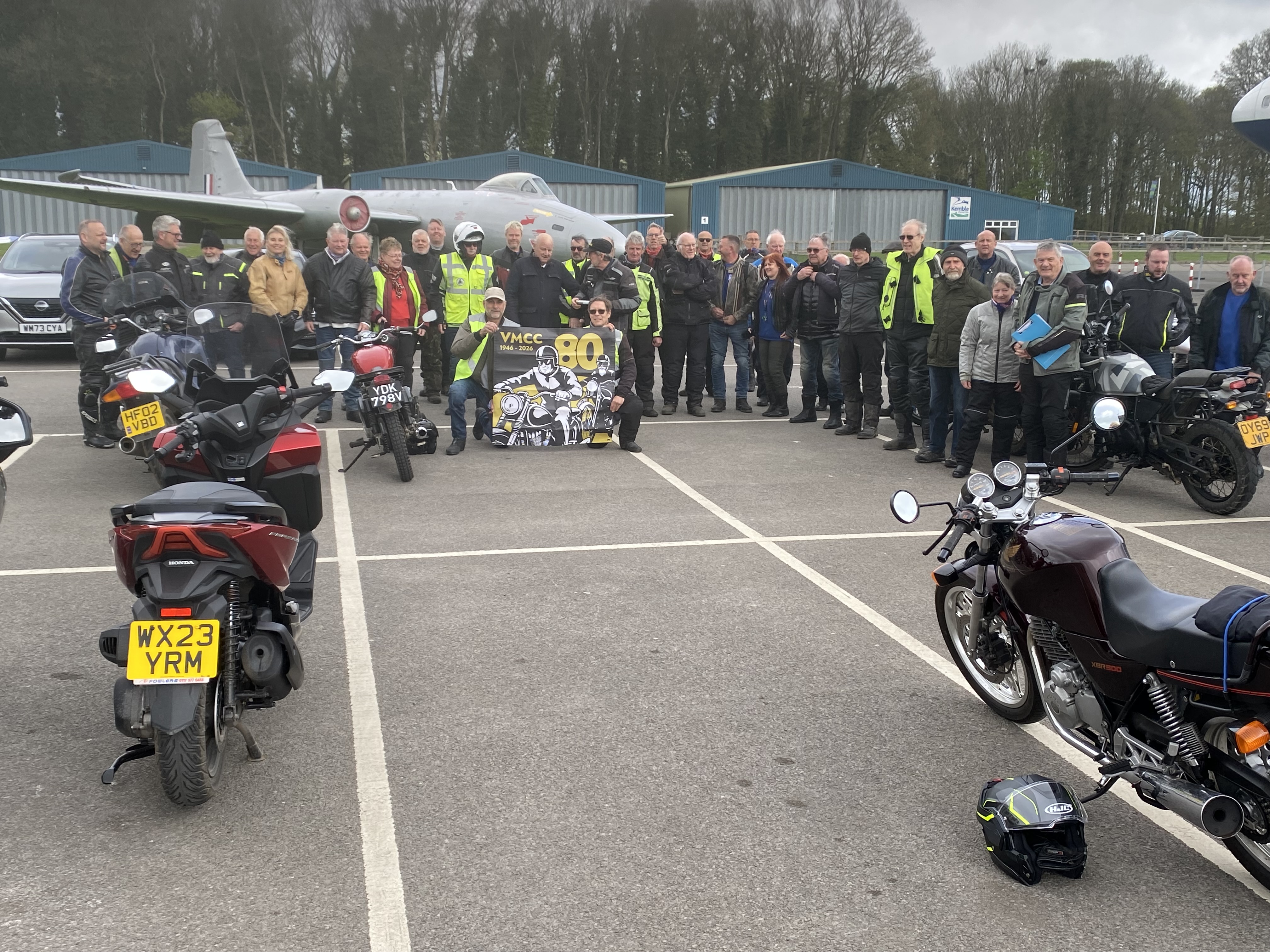 Picture below taken at the AV8 cafe at Cotswold Airport on Sunday 12th April 2026 showing the handover of the 80th Anniversary baton from the West Wilts Section to the South Cotswold Section. Over 40 members were present:
